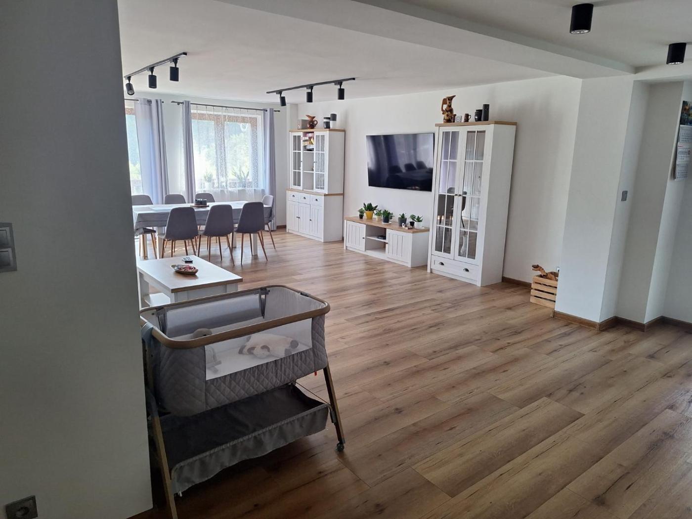 Apartament z 3 sypialniami. Boasting a private entrance, this spacious apartment also includes 1 living room, 3 separate bedrooms and 2 bathrooms with a shower. In the well-fitted kitchen, guests will find a stovetop, a refrigerator, a dishwasher and kitchenware. The apartment offers a flat-screen TV with cable channels, a seating area, a dining area, a wardrobe as well as garden views. The unit has 8 beds. Apartament - 10 osobowy. Powierzchnia pokoju ok.: 100 mkw.
