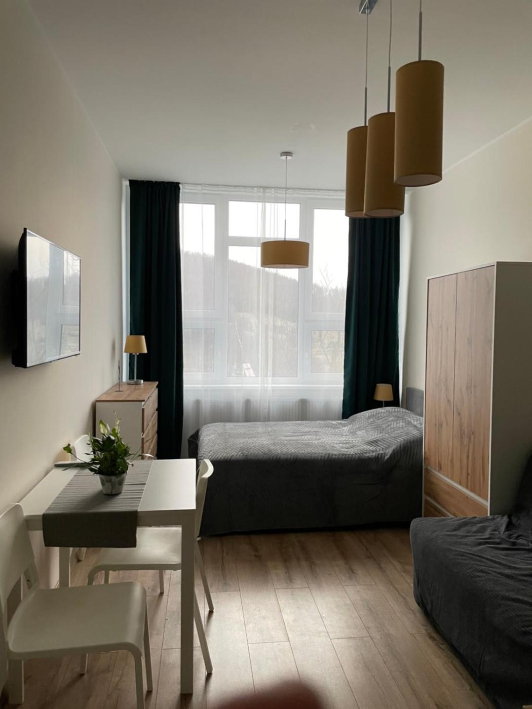 Apartament z 1 sypialnią. Featuring a private entrance, this apartment comprises 1 living room, 1 separate bedroom and 1 bathroom with a shower and a hairdryer. Guests can make meals in the kitchen that comes with a stovetop, a refrigerator and kitchenware. The apartment provides a flat-screen TV with streaming services, a tea and coffee maker, a seating area, a dining area as well as mountain views. The unit offers 2 beds. Apartament - 4 osobowy. Powierzchnia pokoju ok.: 24 mkw.