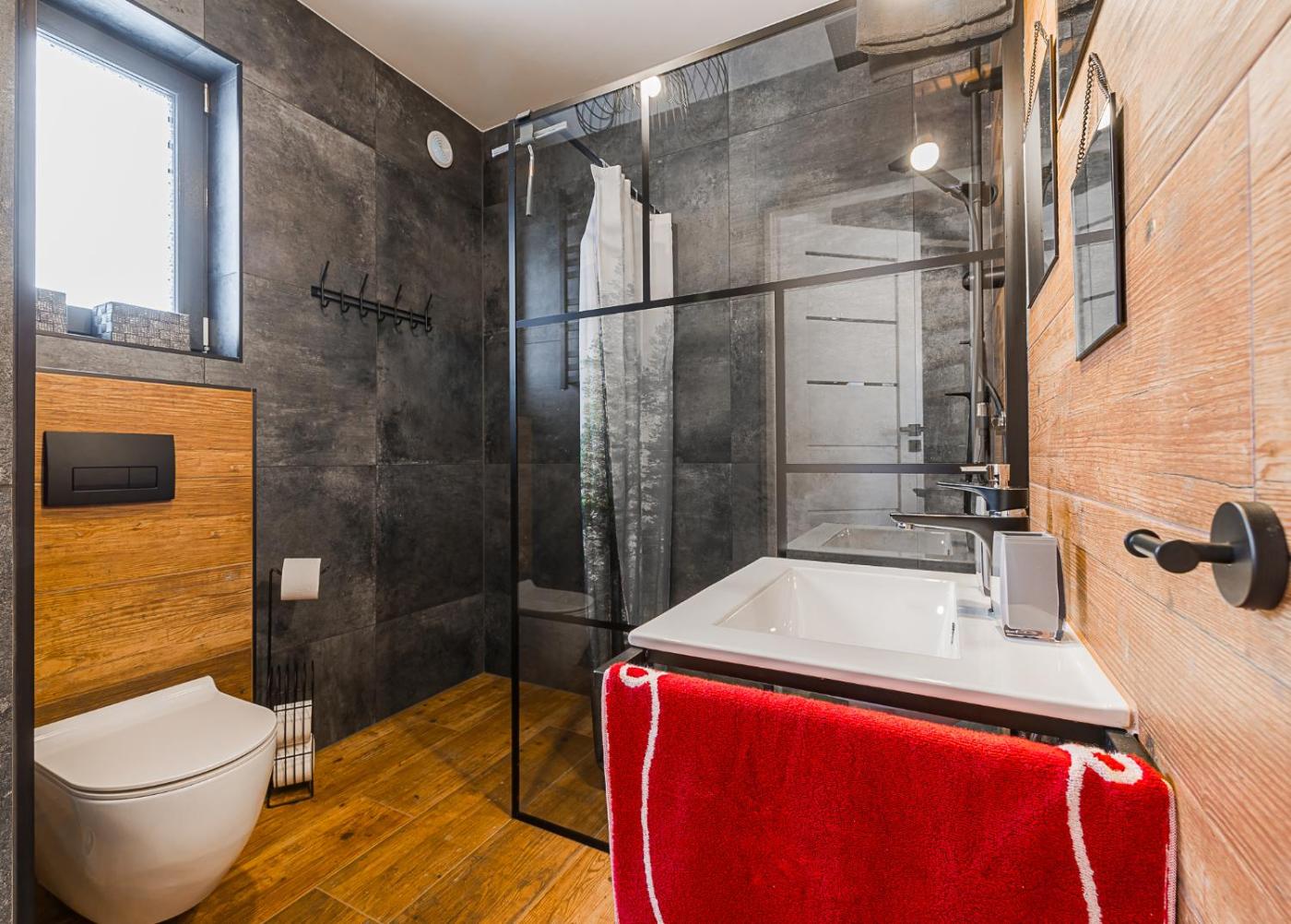 Dom z 2 sypialniami. Boasting a private entrance, this air-conditioned holiday home comes with 1 living room, 2 separate bedrooms and 1 bathroom with a walk-in shower and a hairdryer. In the well-fitted kitchen, guests will find a stovetop, a refrigerator, a dishwasher and kitchenware. Featuring a terrace with garden views, this holiday home also features a coffee machine and a flat-screen TV. The unit has 4 beds. Dom wakacyjny - 6 osobowy. Powierzchnia pokoju ok.: 60 mkw. ;