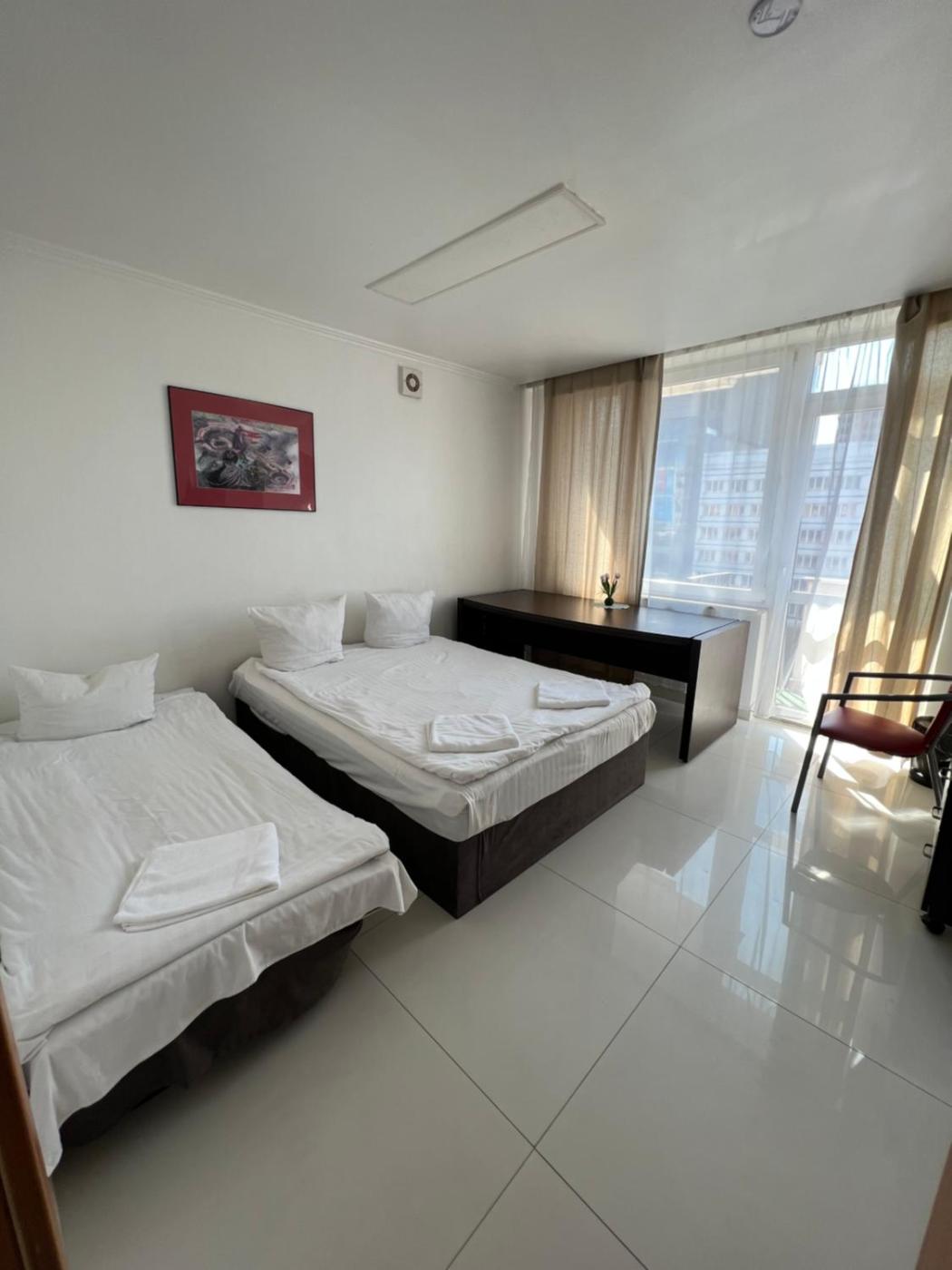 Apartament z widokiem na miasto. W tej opcji zakwaterowania znajduje się 1 łóżko oraz 1 materac futon. Apartament - 3 osobowy. Powierzchnia pokoju ok.: 14 mkw. ;