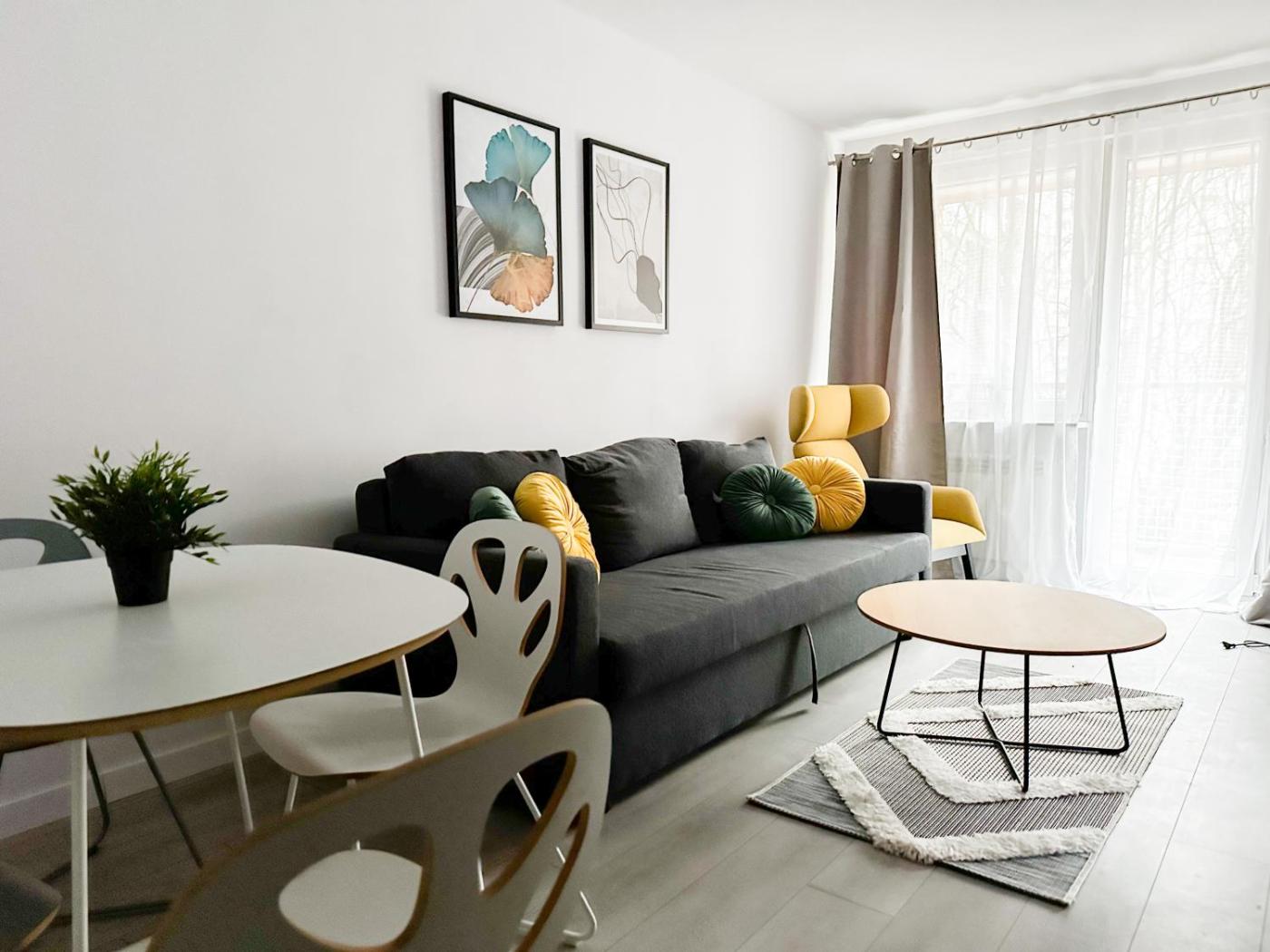 Apartament z 1 sypialnią. Featuring a private entrance, this apartment comprises 1 living room, 1 separate bedroom and 1 bathroom with a shower and a hairdryer. A kitchenette equipped with a stovetop, kitchenware and an oven is available for cooking and storing food. The apartment features parquet floors, a seating area with a flat-screen TV, a washing machine, a tea and coffee maker as well as garden views. The unit offers 2 beds. Apartament - 4 osobowy. Powierzchnia pokoju ok.: 38 mkw. ;