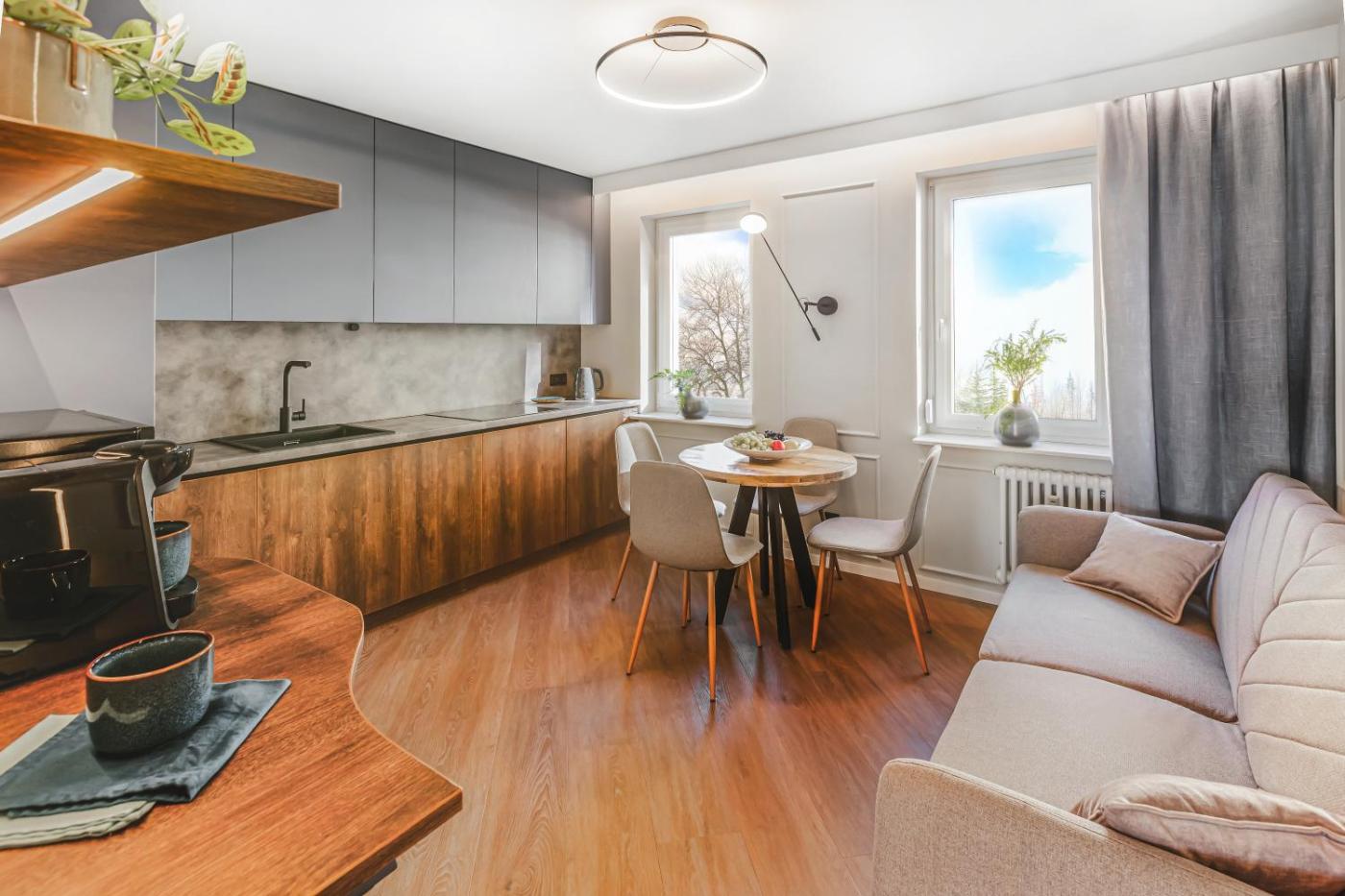 Apartament z 2 sypialniami. Meals can be prepared in the kitchen, which comes with a stovetop, a refrigerator, a dishwasher and kitchenware. The spacious apartment provides air conditioning, a washing machine, a private entrance, soundproof walls, as well as a flat-screen TV with cable channels. The unit offers 4 beds. Apartament - 7 osobowy. Powierzchnia pokoju ok.: 65 mkw.